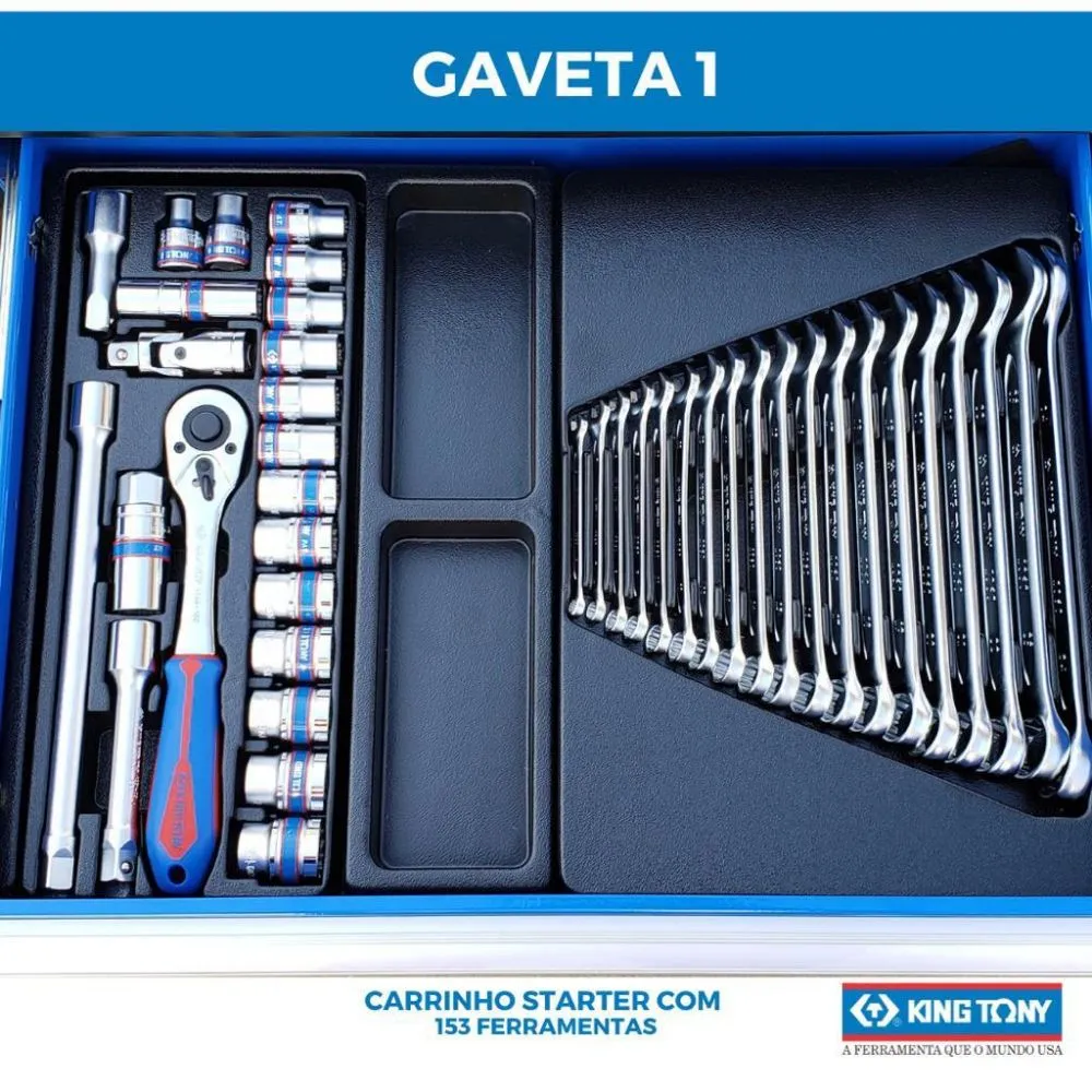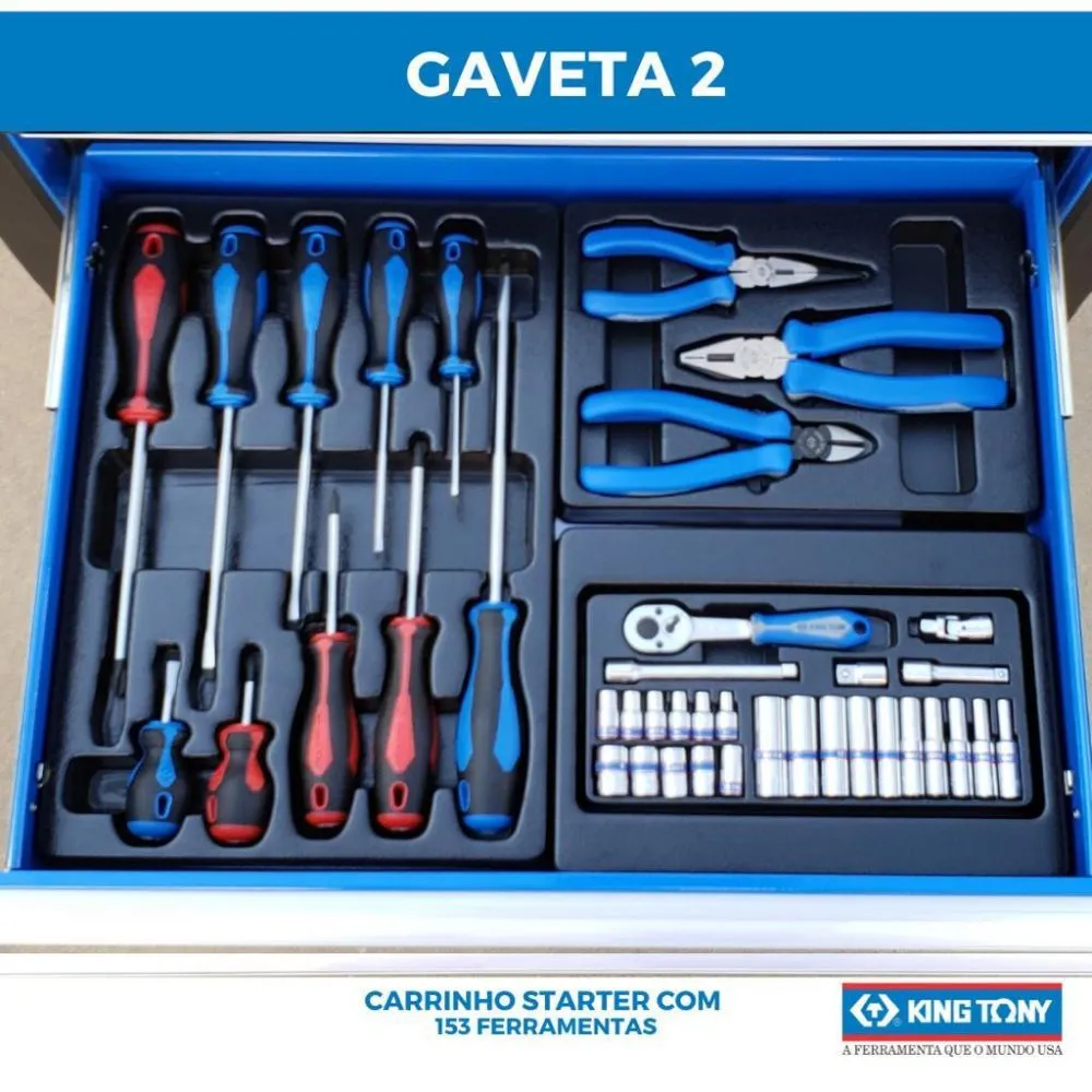 Carrinho para Ferramentas com 7 gavetas Starter 153 peças King Tony