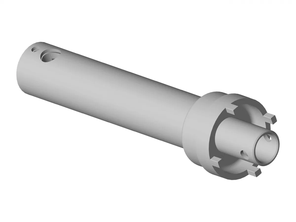 Chave com cabo longo tubular, encaixe com Ø 74,5 mm e 4 dentes e guia, para porca ranhurada interna do cubo de roda dianteiro.